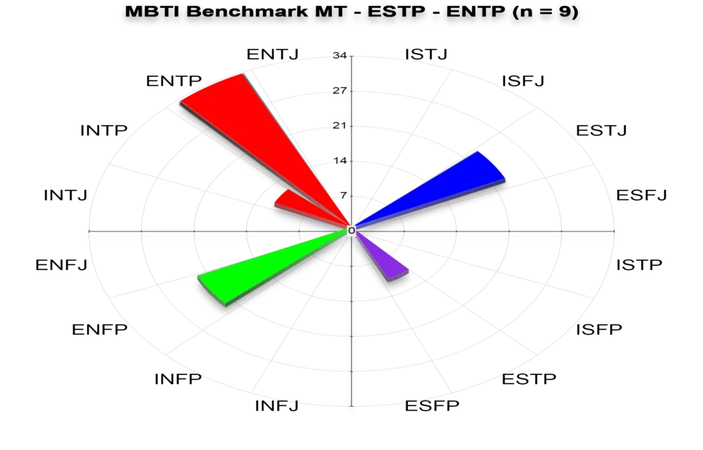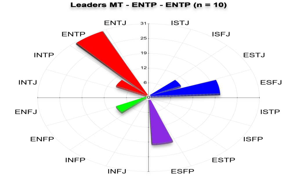 This is the MBTI profile distribution of an exceptional MT – 9 members led by an ESTP leader with a clear vision for leveraging diverse talents. This distribution wasn’t accidental. The leader used MBTI strategically in his leadership development to maximize team effectiveness.